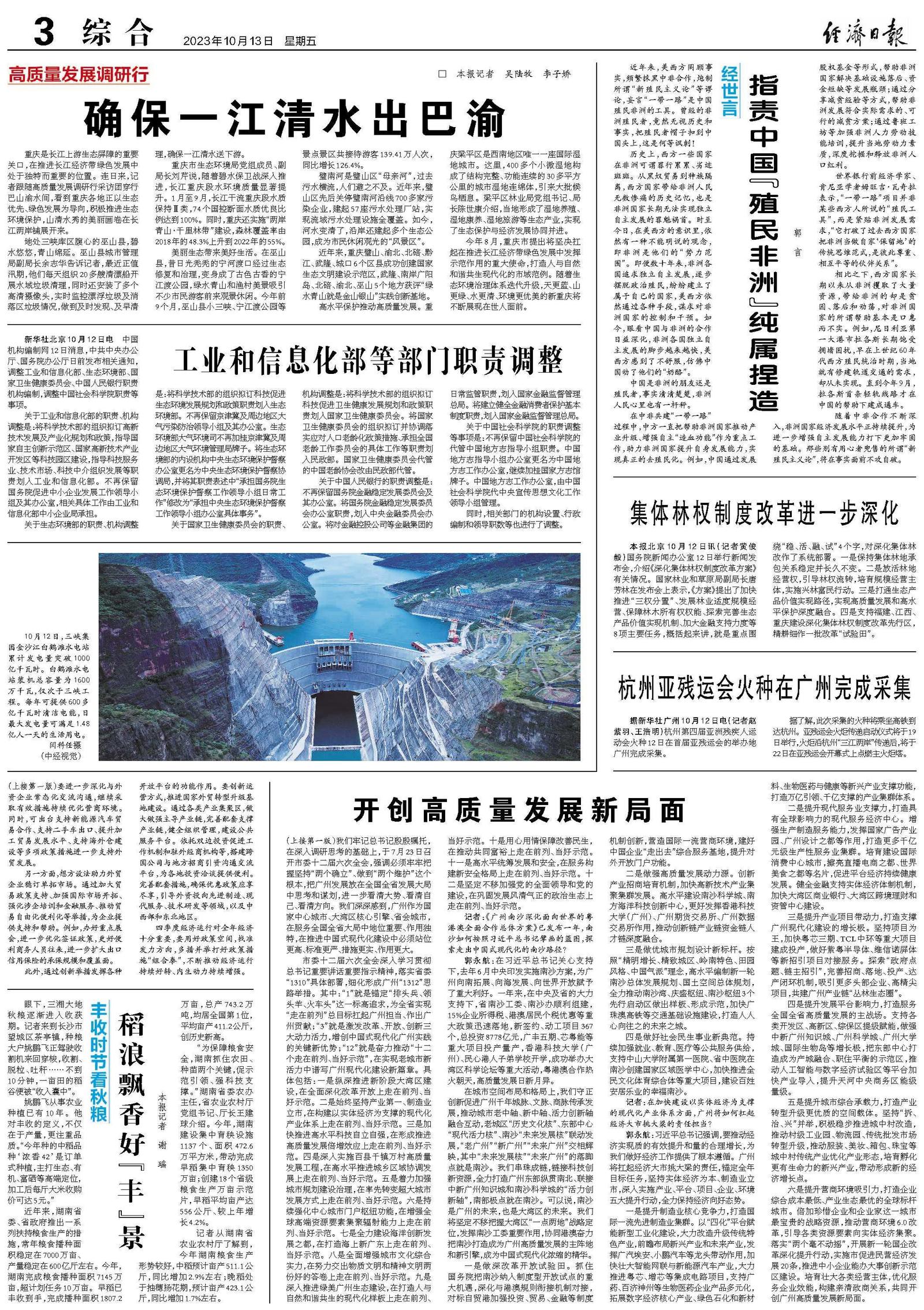 本报北京10月12日讯(记者黄俊毅)国务院新闻办公室12日举行新闻发布会,介绍《深化集体林权制度改革方案》有关情况。国家林业和草原局副局长唐芳林在发布会上表示,《方案》提出了加快推进“三权分置”、发展林业适度规模经营、保障林木所有权权能、探索完善生态产品价值实现机制、加大金融支持力度等8项主要任务,概括起来讲,就是重点围绕“稳、活、融、试”4个字,对深化集体林改作了系统部署。一是保持集体林地承包关系稳定并长久不变。二是放活林地经营权,引导林权流转,培育规模经营主体,实施兴林富民行动。三是打通生态产品价值实现路径,实现高质量发展和高水平保护深度融合。四是支持福建、江西、重庆建设深化集体林权制度改革先行区,精耕细作一批改革“试验田”。