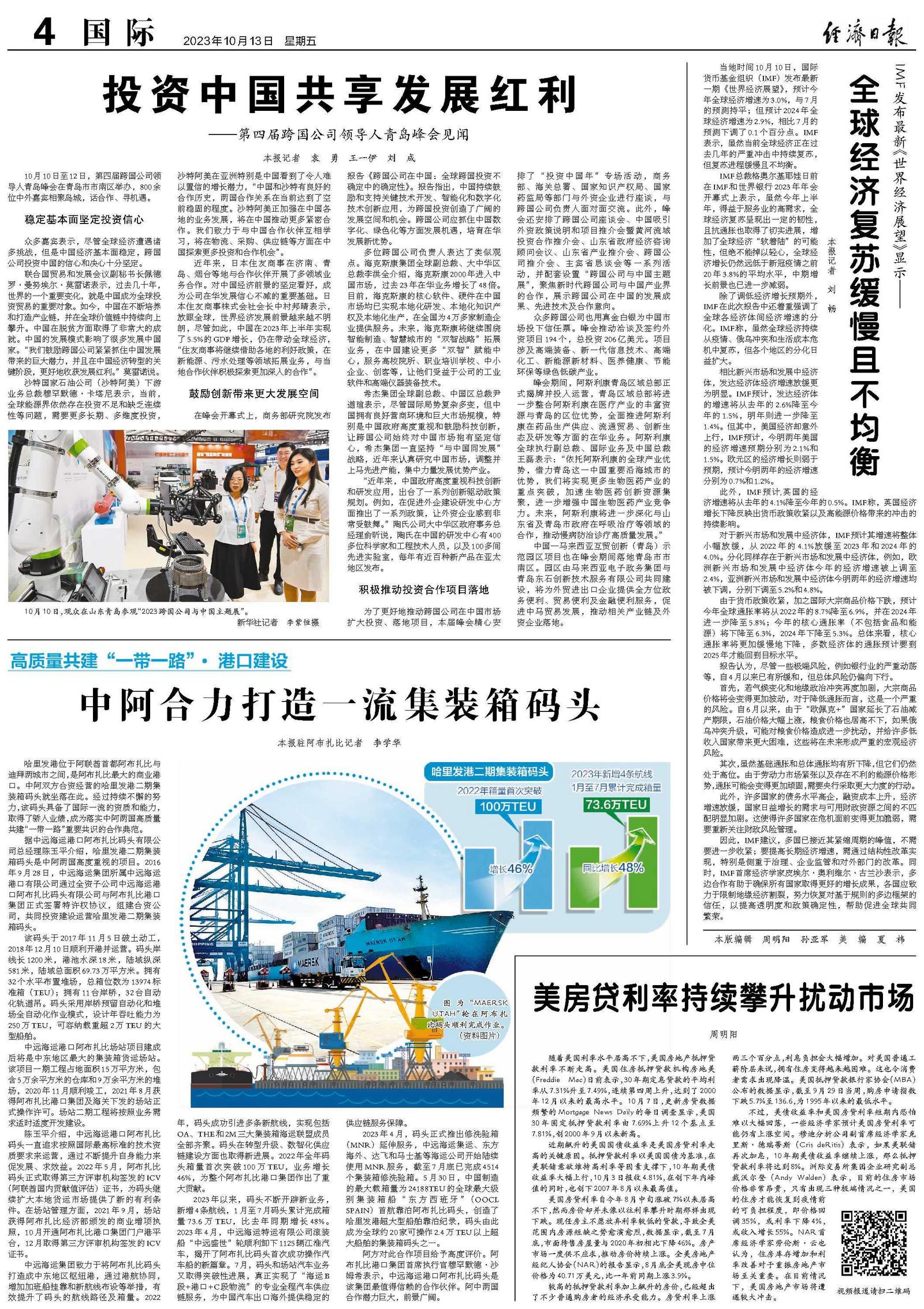 2023年以来,码头不断开辟新业务,新增4条航线,1月至7月码头累计完成箱量73.6万TEU,比去年同期增长48%。2023年4月,中远海运特运有限公司滚装船“中远盛世”轮顺利卸下1125辆江淮汽车,揭开了阿布扎比码头首次成功操作汽车船的新篇章。7月,码头和场站汽车业务又取得突破性进展,真正实现了“海运B段+港口+C段物流”的专业全程汽车供应链服务,为中国汽车出口海外提供稳定的供应链服务保障。