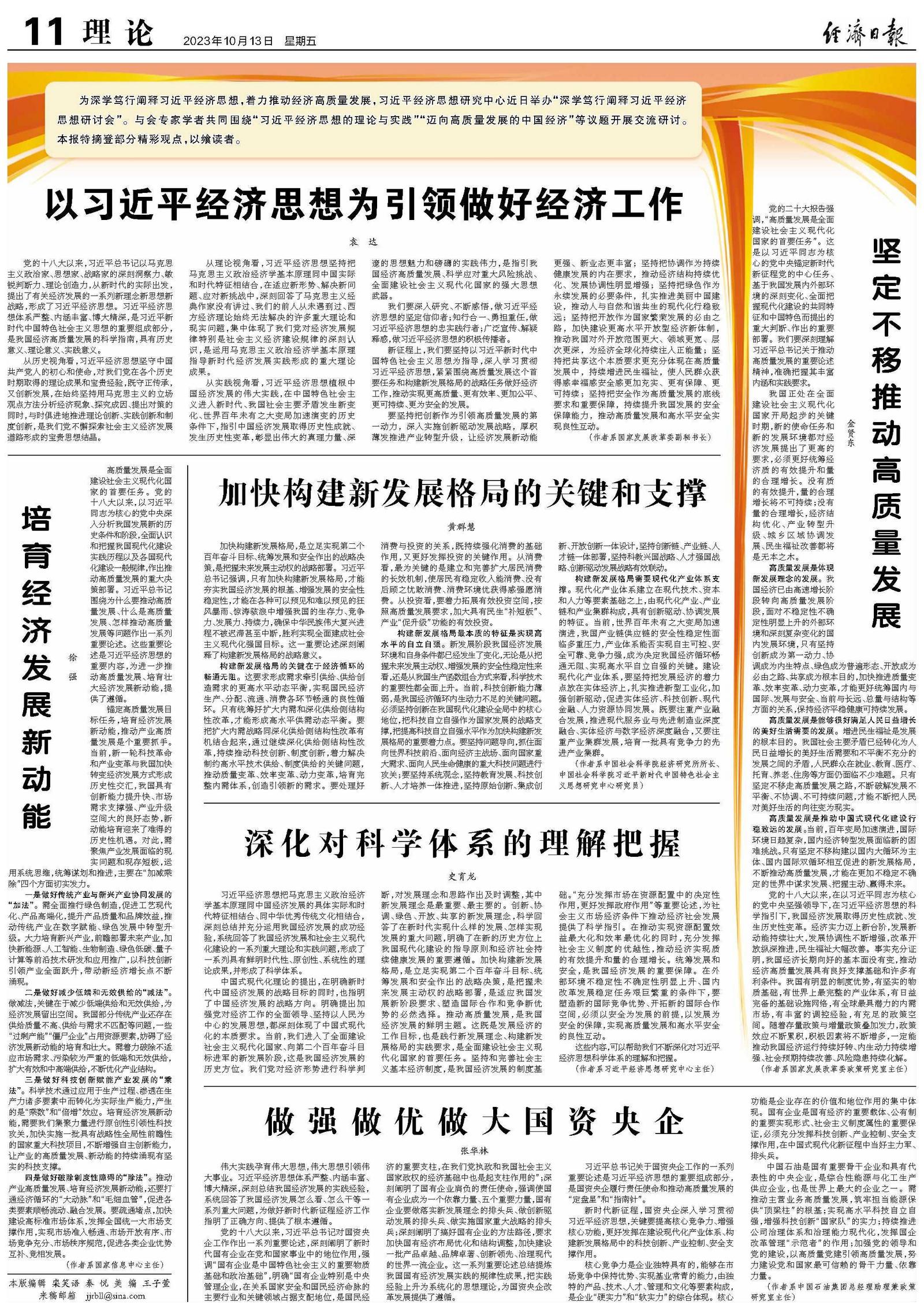 伟大实践孕育伟大思想,伟大思想引领伟大事业。习近平经济思想体系严整、内涵丰富、博大精深,深刻总结我国经济发展的实践经验,系统回答了我国经济发展怎么看、怎么干等一系列重大问题,为做好新时代新征程经济工作指明了正确方向、提供了根本遵循。