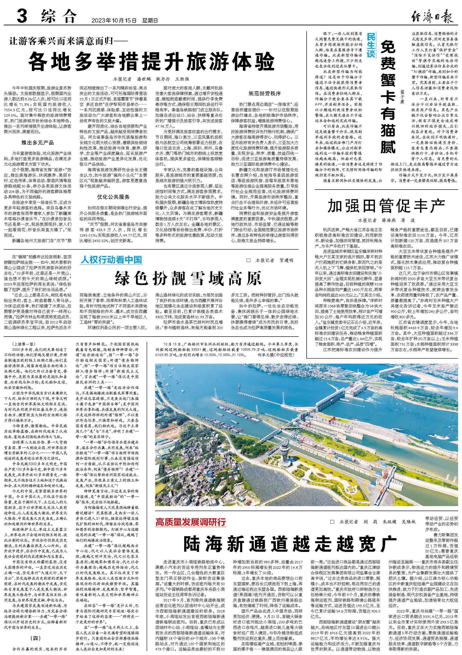 消费权益和旅游安全是提升游客满意度的重要因素。中秋国庆假期,多地行政执法、市场监管、交通运输等部门联合行动,全面规范景区旅游市场秩序,通过各有特色的举措让游客玩得安心,助推文旅业持续增长。