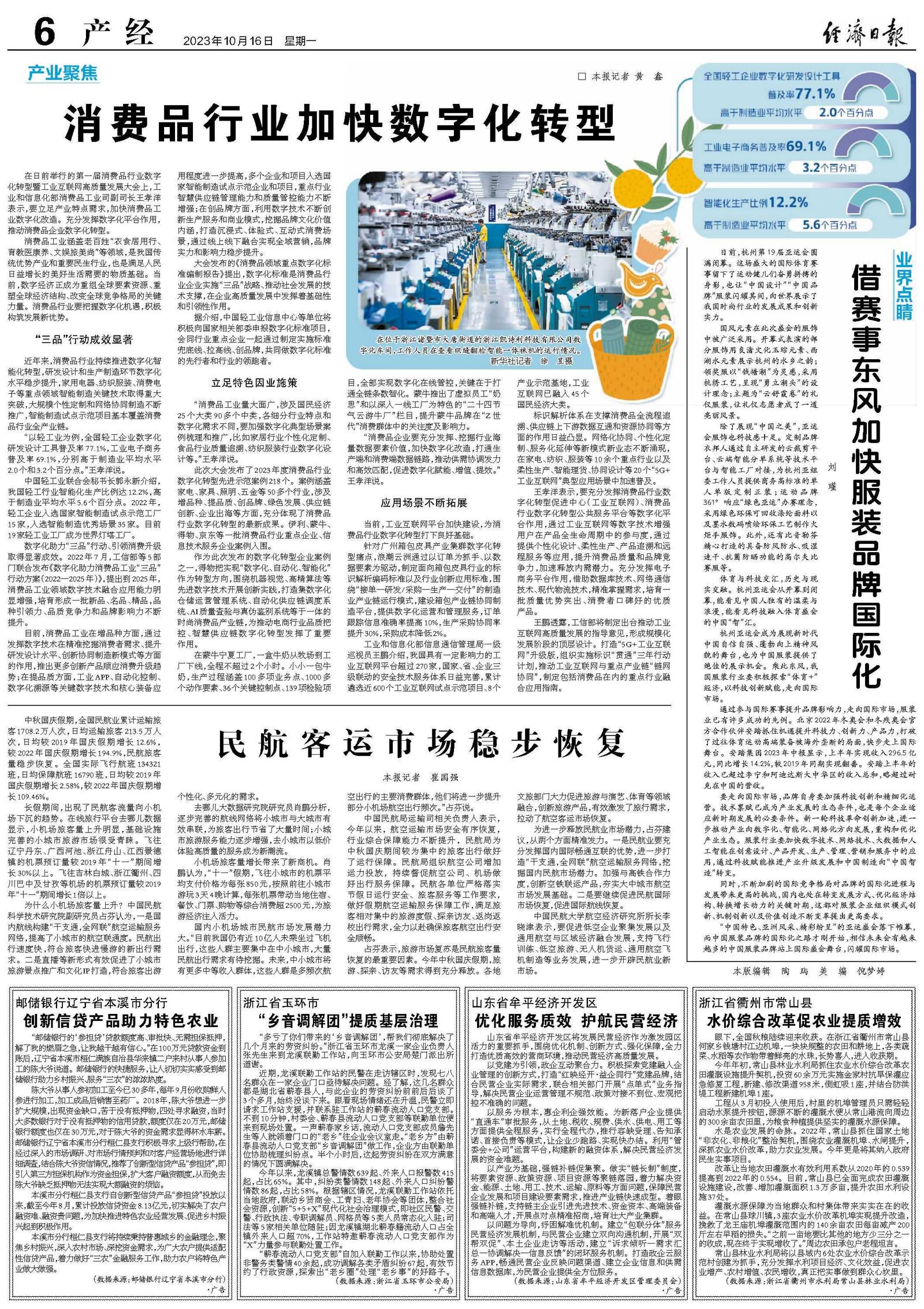 消费品工业涵盖老百姓“衣食居用行、育教医康养、文娱旅美尚”等领域,是我国传统优势产业和重要民生行业,也是满足人民日益增长的美好生活需要的物质基础。当前,数字经济正成为重组全球要素资源、重塑全球经济结构、改变全球竞争格局的关键力量。消费品行业要把握数字化机遇,积极构筑发展新优势。