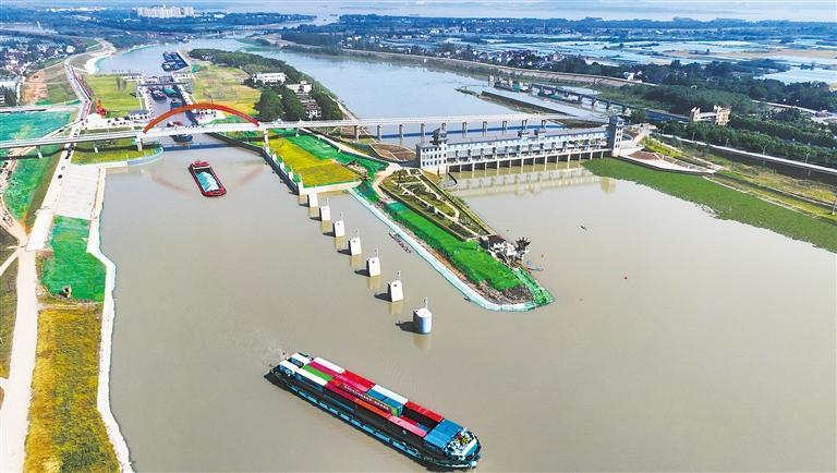 10月16日,合裕航道裕溪一线船闸扩容改造工程在安徽芜湖建成通航。建成后的新裕溪一线船闸与复线船闸协同,年设计货运通过能力大幅提升,有效解决原有船闸通过能力不足问题。王玉实摄(中经视觉)