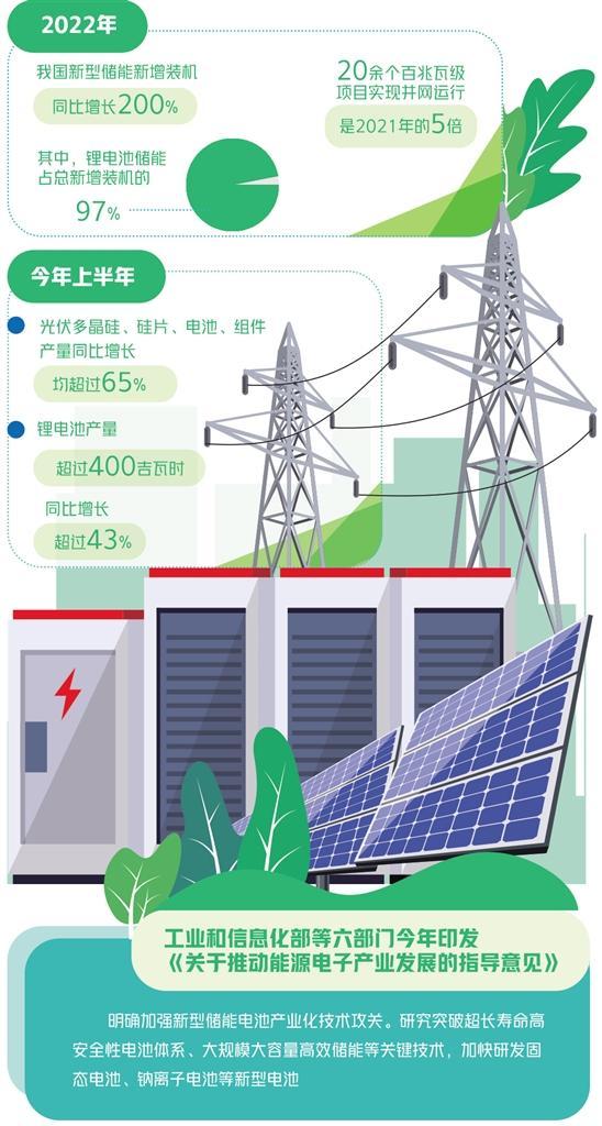 今年上半年,我国新型储能装机规模持续快速增长,已投运项目数量达850个,是去年同期的2倍多;已投运新型储能累计装机量达20GW,其中,2022年装机量为13.1GW,今年上半年装机量为6.9GW。