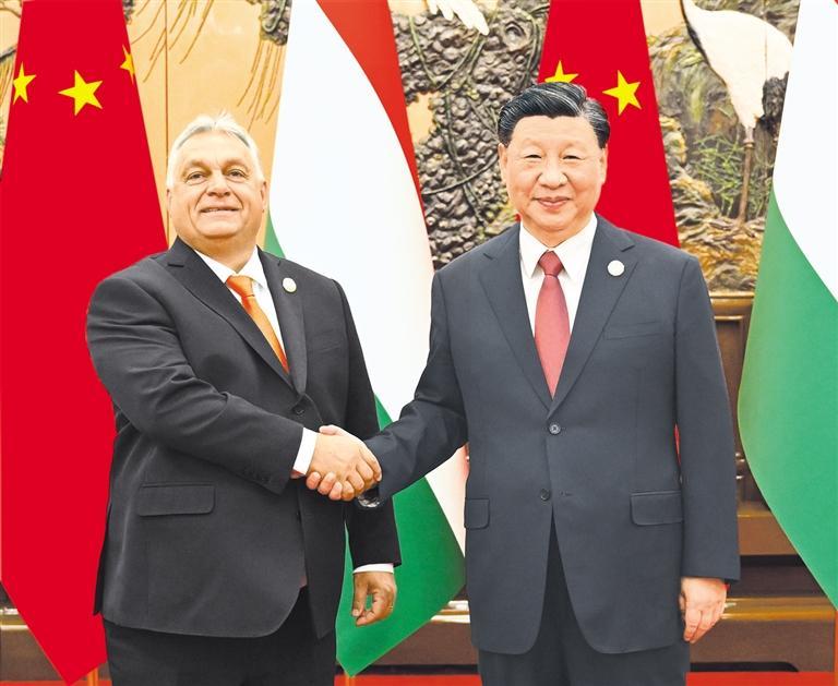 欧尔班表示,在习近平主席亲自关心和支持下,匈中关系近年来保持良好发展,取得丰硕成果,中国企业的投资与合作,包括匈塞铁路建设,显著促进了匈牙利经济社会发展。匈方深信,习近平主席提出的“一带一路”倡议将给世界带来重大改变,有利于促进世界经济发展,给各国人民带来更多福祉,匈方坚定支持并将继续积极参与。当前复杂形势下,匈牙利致力于深化匈中友好合作关系的决心坚定不移,将继续做中国在欧盟可以信任的朋友和伙伴。匈方反对任何脱钩断链和所谓“去风险”的做法,愿同中方一道加强经贸投资、互联互通等领域合作,深化人文交流。匈方将继续积极促进中东欧国家同中国合作,推动欧中关系健康稳定发展。