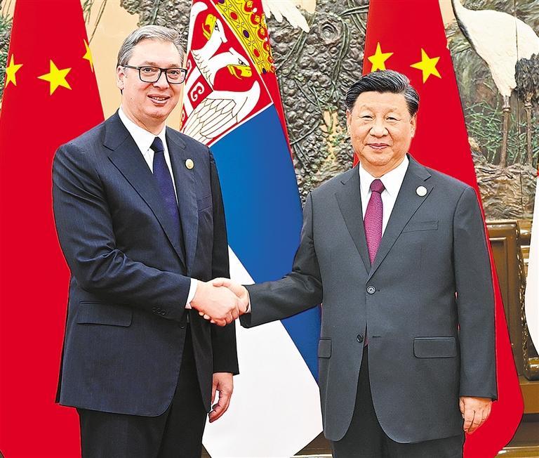 武契奇表示,我率庞大政府代表团来华出席第三届“一带一路”国际合作高峰论坛,体现了塞方对中国的尊重、友好和重视。塞中关系经受住了各种考验,塞方坚定奉行对华友好政策,在所有涉华问题上都同中国站在一起,坚定奉行一个中国政策。我们对塞中铁杆友谊感到自豪。中国始终尊重并平等对待塞尔维亚,在塞尔维亚面临困难时,及时给予宝贵支持。中国的帮助和合作,使塞尔维亚经济保持了良好发展,给人民带来巨大福祉。我很高兴此访期间双方将签署自由贸易协定等合作文件,这将为两国合作开辟新前景。塞方全力支持习近平主席提出的全球发展倡议、全球安全倡议、全球文明倡议,将继续积极参与共建“一带一路”,深化各领域友好合作。希望双方密切人文交流。