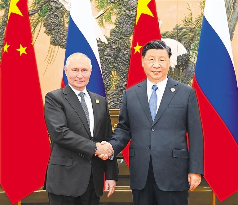 习近平指出,普京总统连续3次出席“一带一路”国际合作高峰论坛,体现了俄方对共建“一带一路”倡议的支持。俄罗斯是中国开展共建“一带一路”国际合作的重要伙伴。中俄东线天然气管道等重大基础设施项目投入运营,为两国人民带来了实打实的好处。中方愿同俄方及欧亚经济联盟各国一道,推动共建“一带一路”与欧亚经济联盟对接,开展更高水平、更深层次的区域合作,希望中蒙俄天然气管道项目尽早取得实质性进展,开展好“万里茶道”跨境旅游合作,把中蒙俄经济走廊打造成一条高质量联通发展之路。