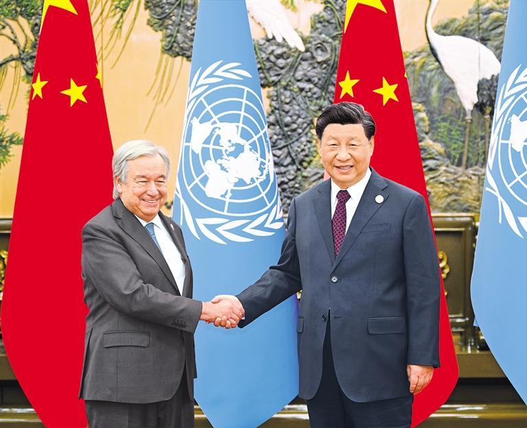 10月18日晚,国家主席习近平在北京人民大会堂会见来华出席第三届“一带一路”国际合作高峰论坛的联合国秘书长古特雷斯。新华社记者 李学仁摄