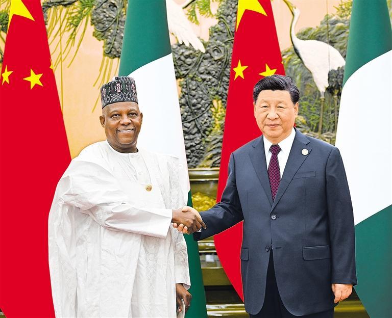 10月18日下午,国家主席习近平在北京人民大会堂会见来华出席第三届“一带一路”国际合作高峰论坛的尼日利亚副总统谢蒂马。新华社记者 李学仁摄