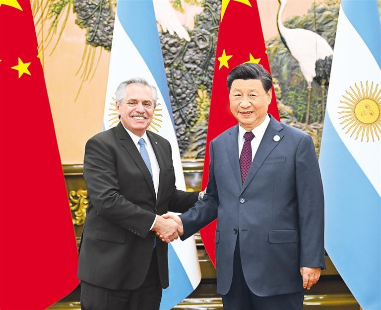10月18日晚,国家主席习近平在北京人民大会堂会见来华出席第三届“一带一路”国际合作高峰论坛的阿根廷总统费尔南德斯。新华社记者 李学仁摄