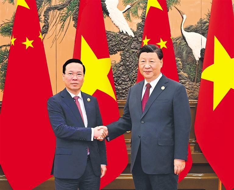 新华社北京10月20日电(记者温馨、陈旭)10月20日上午,国家主席习近平在人民大会堂会见来华出席第三届“一带一路”国际合作高峰论坛的越南国家主席武文赏。