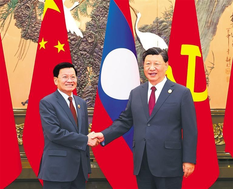 新华社北京10月20日电(记者温馨、张骁)10月20日上午,中共中央总书记、国家主席习近平在人民大会堂会见来华出席第三届“一带一路”国际合作高峰论坛并进行工作访问的老挝人民革命党中央总书记、国家主席通伦。