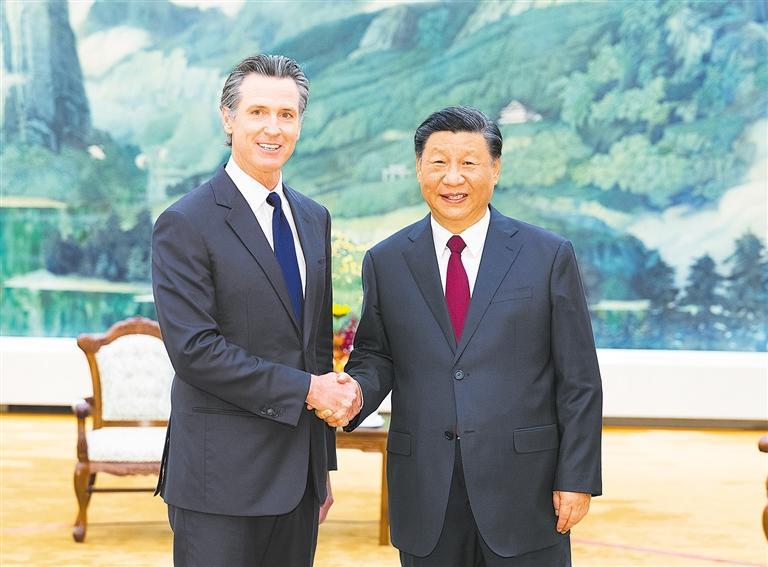 习近平愉快地忆及曾经访问加利福尼亚州的情形,介绍了中国绿色转型以及有关地方发展情况。习近平指出,发展好中美关系,需要汇聚各方力量。中美关系基础在民间,希望在人民,未来在青年,活力在地方。我高度重视并支持中美各界交往和地方合作。希望你此访增进双方相互了解,为扩大中国同加州合作、推动中美关系健康稳定发展发挥积极作用。中美在绿色发展、应对气候变化等领域合作潜力巨大,双方完全可以加强这方面合作,将其打造成中美关系发展新亮点。