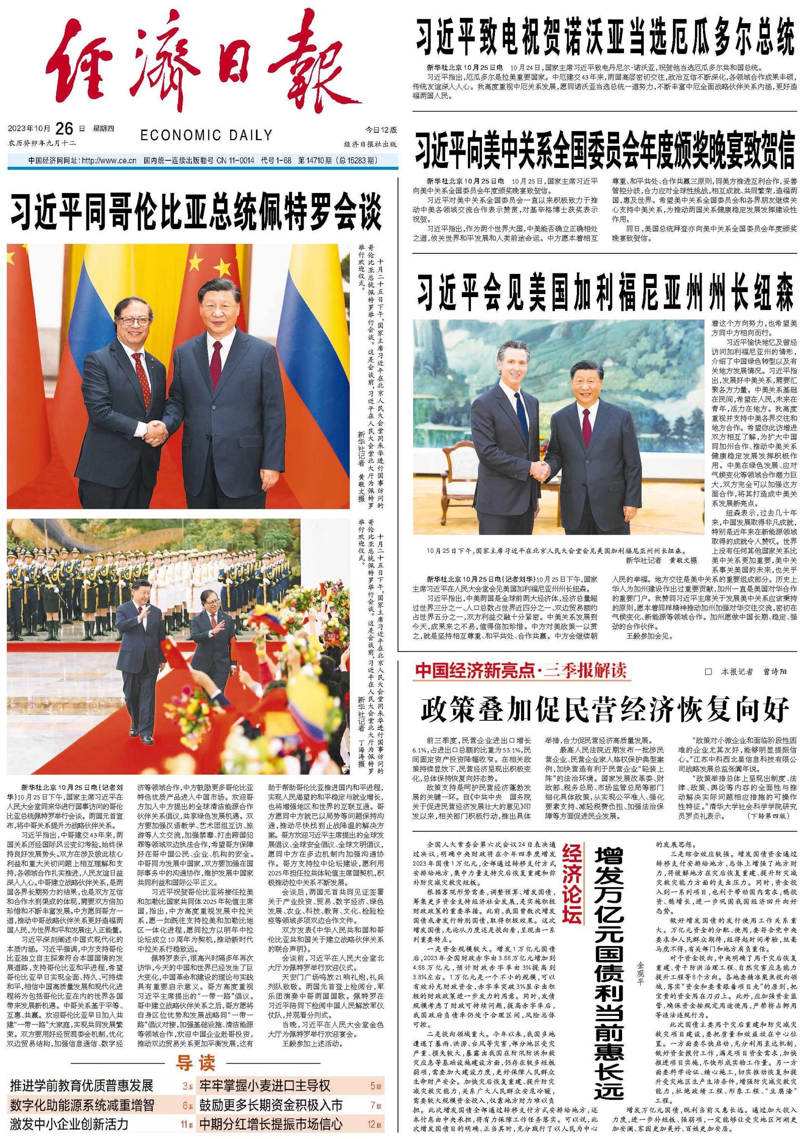新华社北京10月25日电(记者刘华)10月25日下午,国家主席习近平在人民大会堂会见美国加利福尼亚州州长纽森。