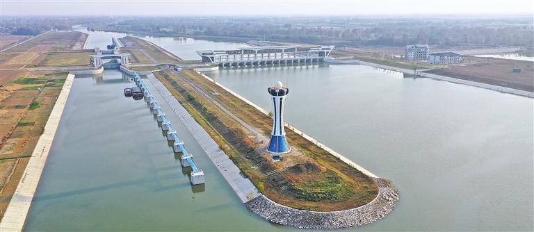 10月24日,俯拍安徽省亳州市蒙城县涡河蒙城枢纽的天气雷达。该项目为中国气象局2022年气象监测预警补短板工程,雷达塔楼设计高度38米,顶部造型寓意“蜻蜓之眼”。