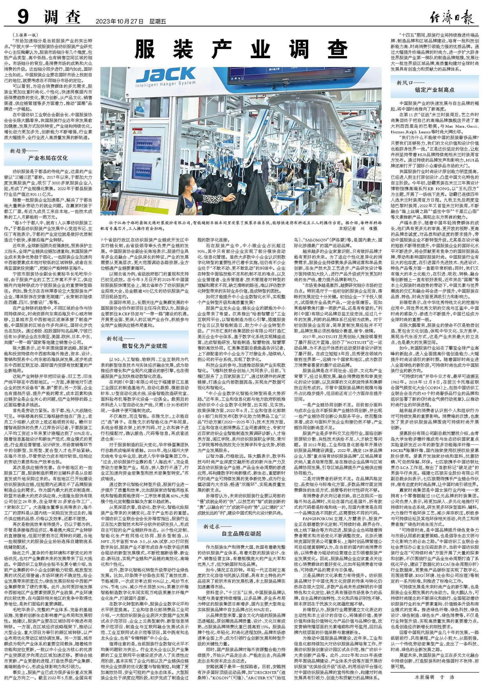 从更深层次看,自动化、数字化、智能化给服装产业带来的关键变化,在于产业形态的重塑。中国纺织工业联合会会长孙瑞哲指出,服装行业正在加大数智技术和平台软件的研发投入,形成自主可控的全产业链软件生态。从个性化定制、智能化生产到网络化协同、服务型制造,从NFT、元宇宙到Web 3.0,从AR试穿、3D打印到数字共创,服装产业不断形成自身与数字经济耦合驱动的新型发展模式,不断挖掘新场景、新业态、新玩法,实现产业链和产品链的高效化、高端化和个性化。
