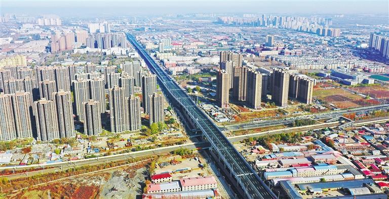 10月26日,由中铁二十二局参建的哈尔滨市东三环快速路通车,图为已完工的快速路电碳路段。该快速路投用后,将有效发挥区域交通疏导功能,缓解当地交通压力。