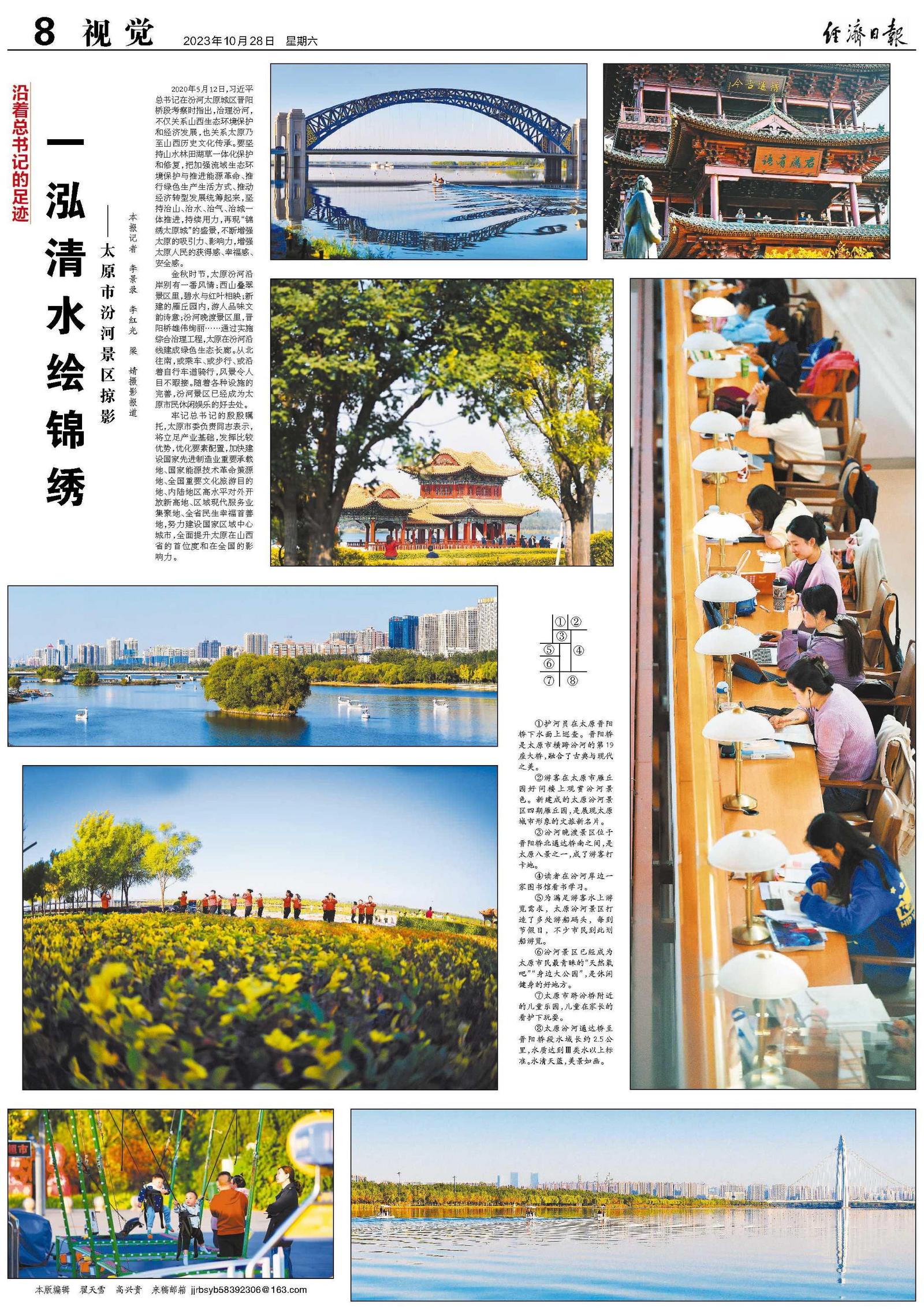 金秋时节,太原汾河沿岸别有一番风情:西山叠翠景区里,碧水与红叶相映;新建的雁丘园内,游人品味文韵诗意;汾河晚渡景区里,晋阳桥雄伟绚丽……通过实施综合治理工程,太原在汾河沿线建成绿色生态长廊。从北往南,或乘车、或步行、或沿着自行车道骑行,风景令人目不暇接。随着各种设施的完善,汾河景区已经成为太原市民休闲娱乐的好去处。