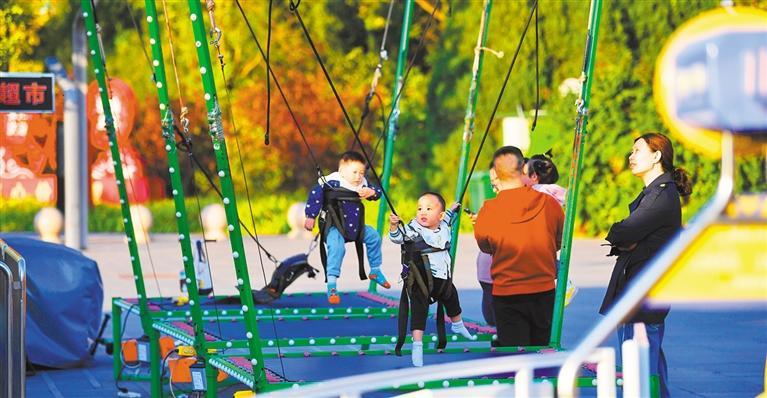⑦太原市跻汾桥附近的儿童乐园,儿童在家长的看护下玩耍。