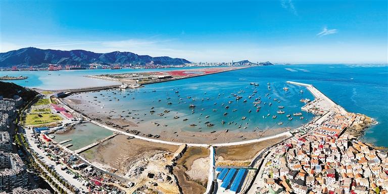 10月28日,建设中的江苏省连云港市连岛国家级中心渔港码头。项目建成后可满足800艘以上大中小型渔船停泊装卸作业和补给需求,解决此前码头泊位少、港内掩护水域面积小、陆域配套设施欠缺等问题,改善渔港服务功能和生产秩序。