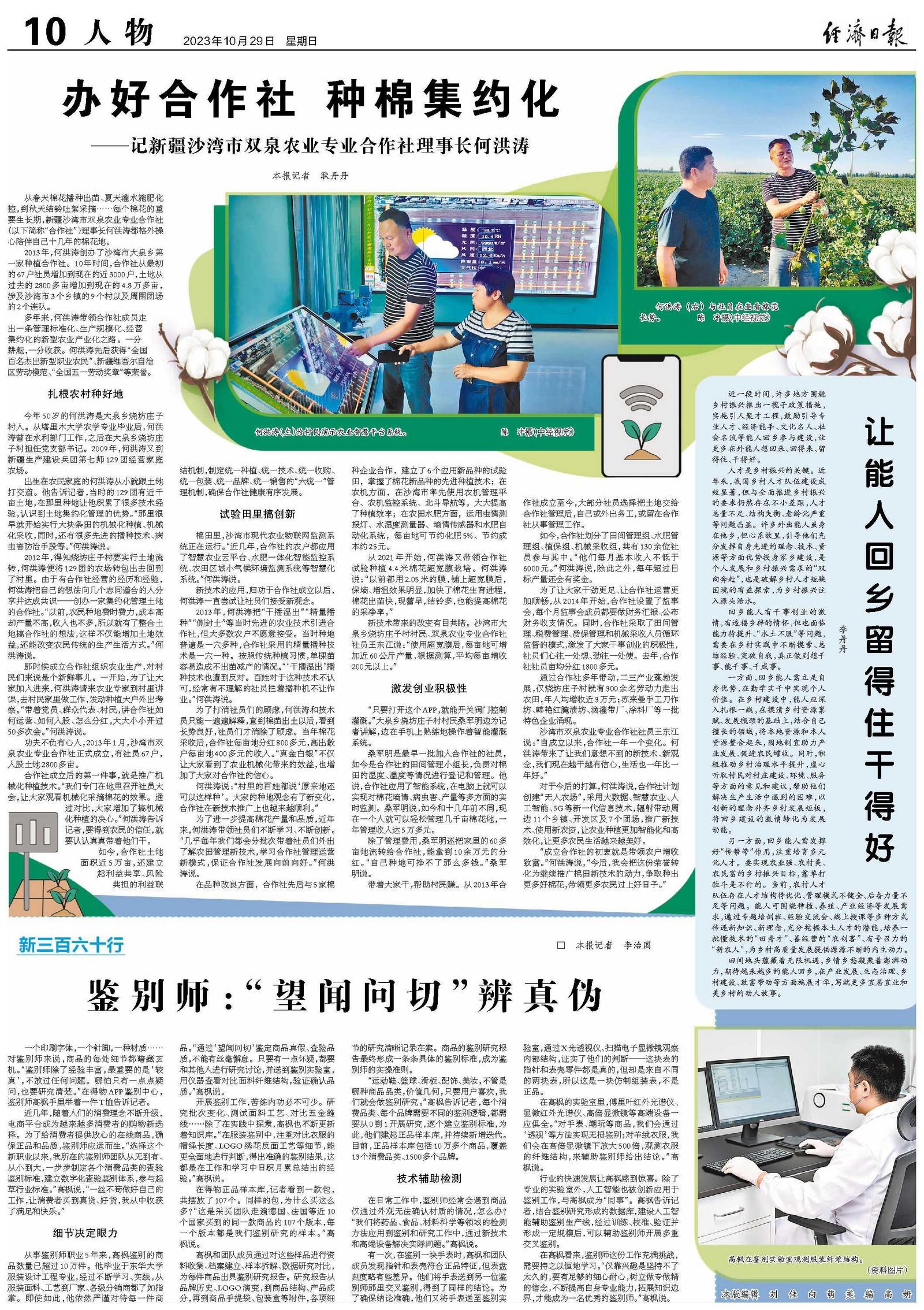 近几年,随着人们的消费理念不断升级,电商平台成为越来越多消费者的购物新选择。为了给消费者提供放心的在线商品,确保正品和品质,鉴别师应运而生。“选择这个新职业以来,我所在的鉴别师团队从无到有、从小到大,一步步制定各个消费品类的查验鉴别标准,建立数字化查验鉴别体系,参与起草行业标准。”高枫说,“一丝不苟做好自己的工作,让消费者买到真货、好货,我从中收获了满足和快乐。”