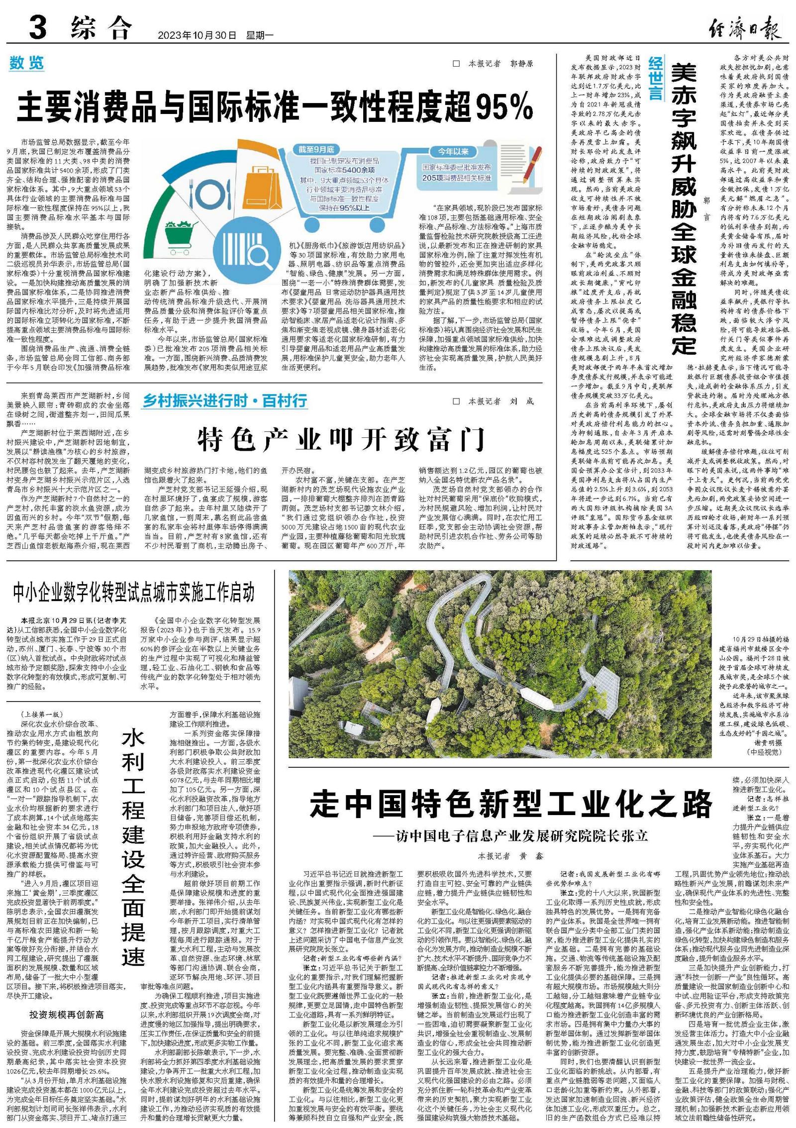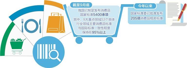 市场监管总局数据显示,截至今年9月底,我国已制定发布覆盖消费品分类国家标准的11大类、98中类的消费品国家标准共计5400余项,形成了门类齐全、结构合理、强推配套的消费品国家标准体系。其中,9大重点领域53个具体行业领域的主要消费品标准与国际标准一致性程度保持在95%以上,我国主要消费品标准水平基本与国际接轨。