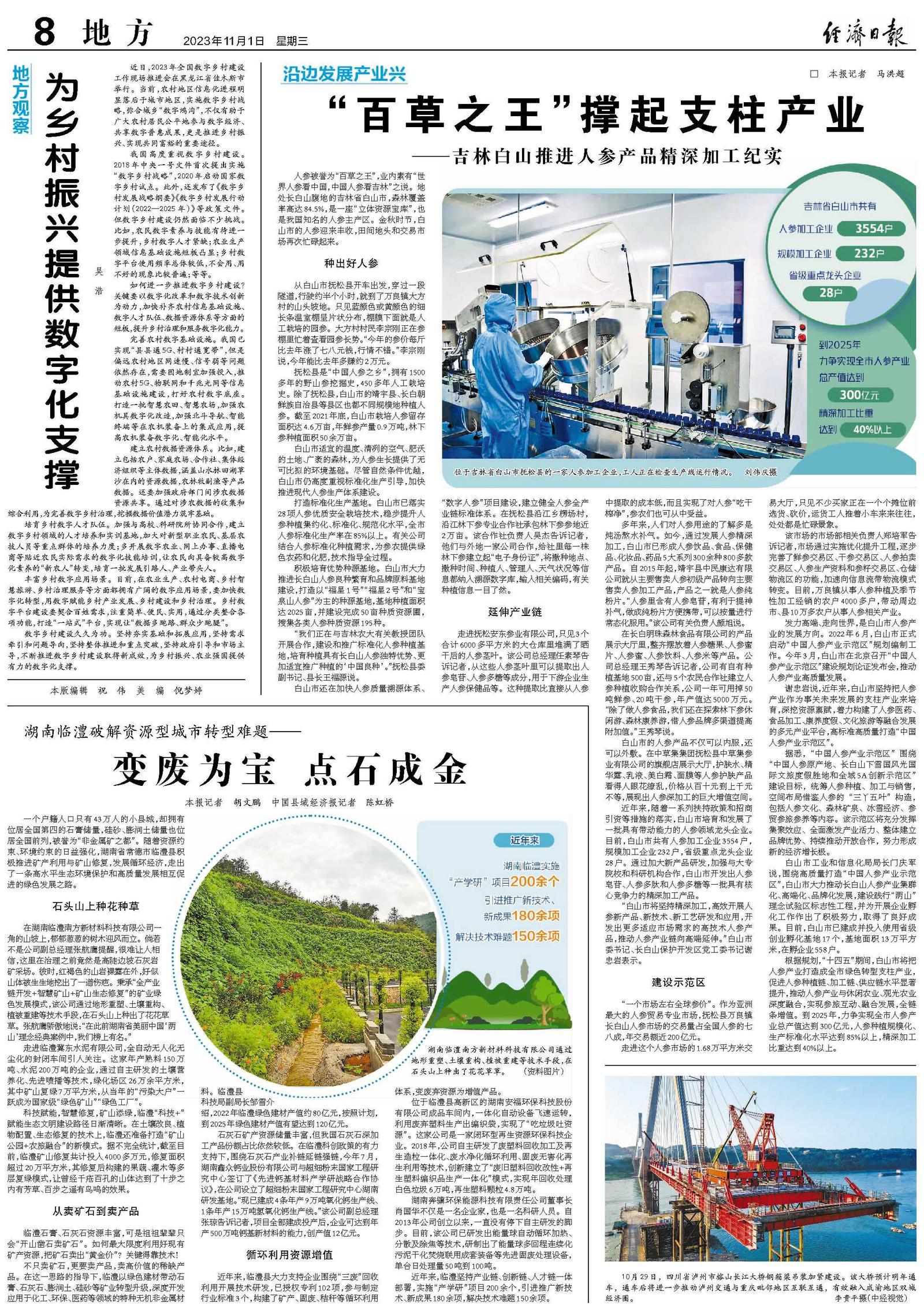 谢忠岩说,近年来,白山市坚持把人参产业作为事关未来发展的支柱产业来培育,深挖资源禀赋,着力构建了人参医药、食品加工、康养度假、文化旅游等融合发展的多元产业平台,高标准高质量打造“中国人参产业示范区”。