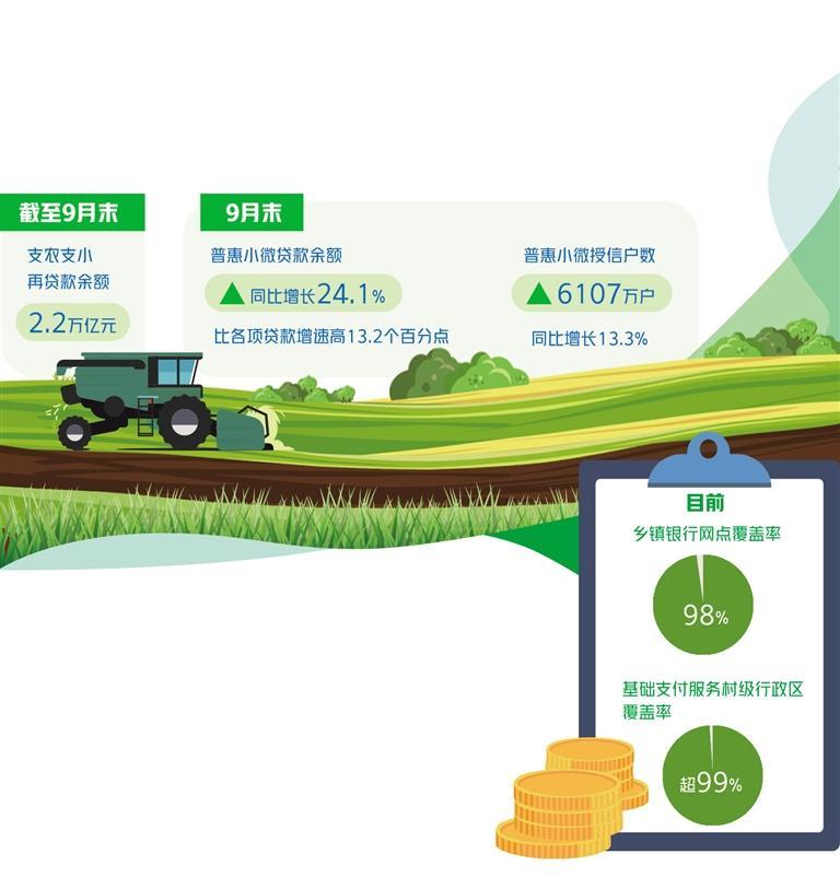 数据显示,近年来,人民银行先后推出支农支小再贷款、扶贫再贷款、普惠小微贷款两项直达工具与接续工具、碳减排支持工具及支持煤炭清洁高效利用、科技创新、交通物流、普惠养老再贷款等系列政策工具,持续丰富政策工具箱。截至今年9月末,支农支小再贷款余额达2.2万亿元;9月末,普惠小微贷款余额同比增长24.1%,比各项贷款增速高13.2个百分点;普惠小微授信户数为6107万户,同比增长13.3%。