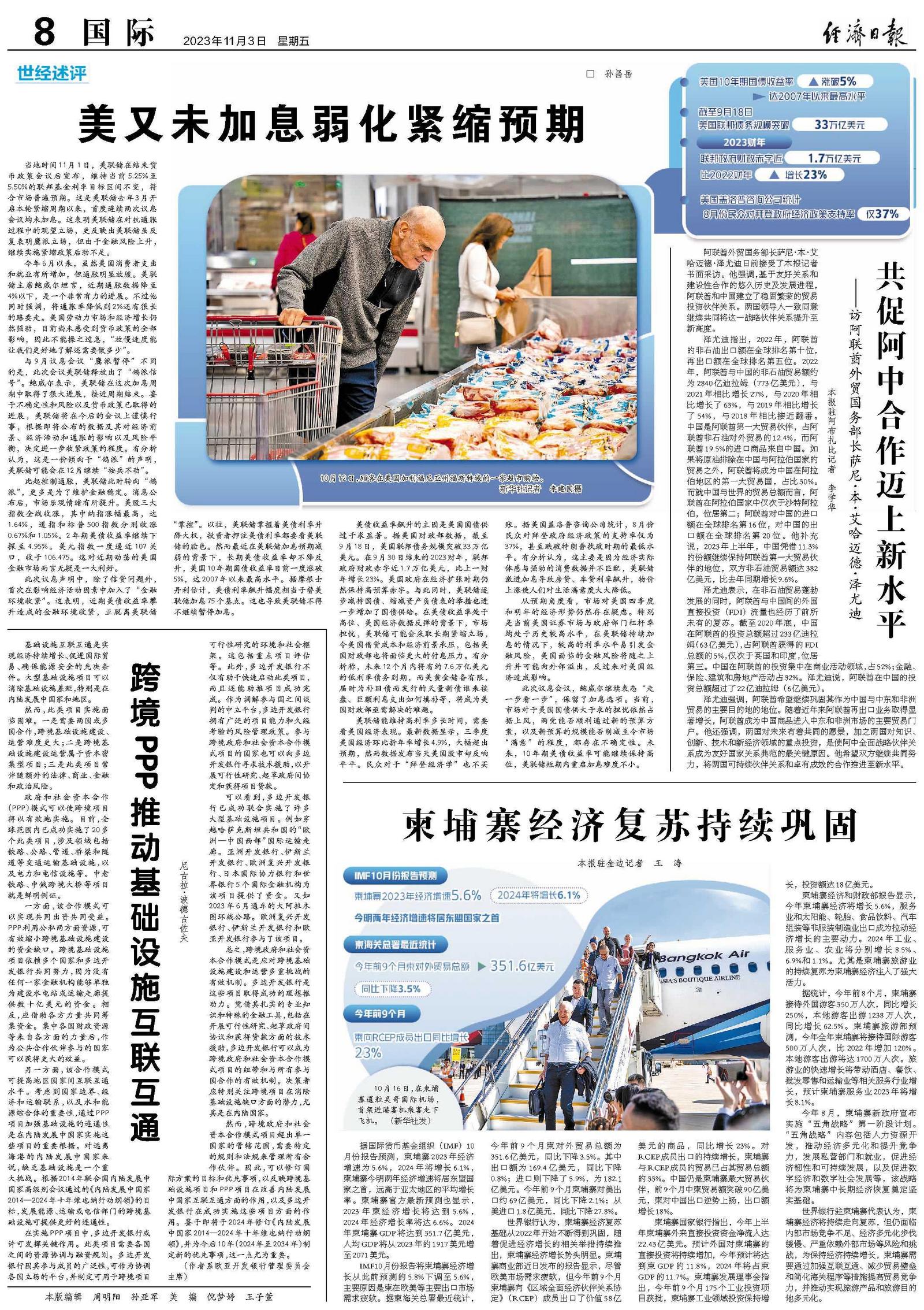 柬埔寨经济和财政部报告显示,今年柬埔寨经济将增长5.6%,服务业和太阳能、轮胎、食品饮料、汽车组装等非服装制造业出口成为拉动经济增长的主要动力。2024年工业、服务业、农业将分别增长8.5%、6.9%和1.1%。尤其是柬埔寨旅游业的持续复苏为柬埔寨经济注入了强大活力。
