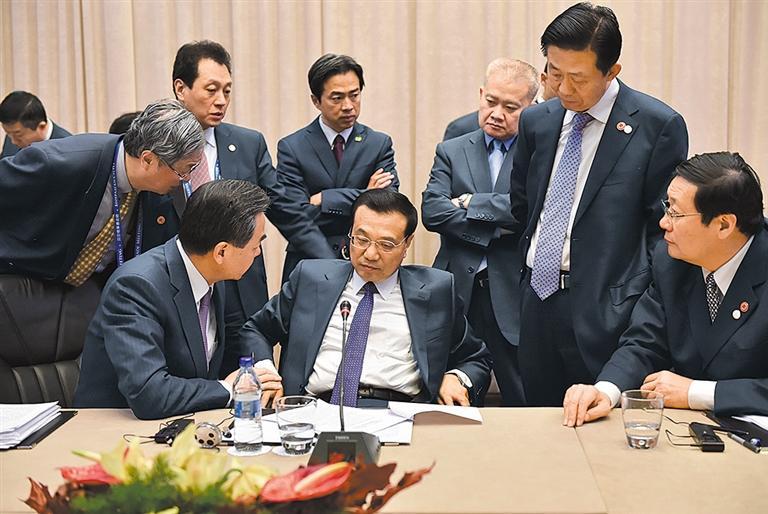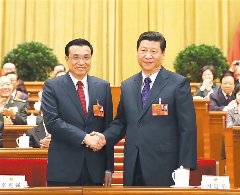 2012年11月,李克强同志在中共十八届一中全会上再次当选为中央政治局委员、常委。2013年3月,在十二届全国人大一次会议上,他被任命为国务院总理,同月起任国务院党组书记。面对错综复杂的国内外形势,在以习近平同志为核心的党中央坚强领导下,坚持稳中求进工作总基调,保持战略定力,着力完善宏观调控,注重预调微调,注重定向调控,着力推进供给侧结构性改革,适度扩大总需求,推动实现更高层次的供需动态平衡。加快新旧动能转换,大力发展新兴产业,改造提升传统产业,深入开展“互联网+”行动,推进制造强国建设,实施工业强基、智能制造、绿色制造等重大工程,促进经济结构加快优化升级。引导金融支持实体经济,加强普惠金融服务。坚持创新引领发展,实施创新驱动发展战略,完善支持政策,营造鼓励创业创新的良好环境,着力激发社会创造力。坚持对外开放的基本国策,在上海等省市设立一批自由贸易试验区,扎实推进“一带一路”建设,显著提升开放型经济水平。深入实施区域协调发展和新型城镇化战略,推动新的增长极增长带加快成长,推动全面深化农村改革,促进农村一二三产业融合发展,增强城乡区域发展协调性。坚持以人民为中心的发展思想,着力保障和改善民生,推进精准扶贫、精准脱贫,实施积极的就业政策,坚持教育优先发展,促进城乡教育均衡发展,加快推进分级诊疗和医联体建设,建立统一的城乡居民基本养老、医疗保险制度,完善社会救助制度,加快构建社会保障安全网,人民群众获得感不断增强。坚持人与自然和谐发展,着力治理环境污染,生态文明建设取得积极进展。推动依法全面履行政府职能,落实中央八项规定精神,坚持“约法三章”,努力建设人民满意的法治政府、创新政府、廉洁政府和服务型政府。