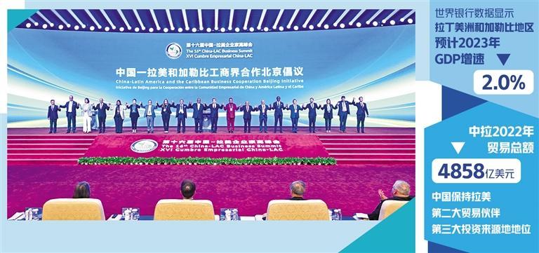 中国—拉美企业家高峰会创办于2007年,是中国—拉共体论坛框架下重要的经贸合作平台。中国贸促会会长任鸿斌表示,在中拉领导人共同引领下,新时代中拉关系建设不断取得新进展。“希望与会代表充分利用本届高峰会平台,深入沟通交流,发掘合作商机,取得务实成果。中国贸促会将加强与中国人民银行、美洲开发银行等机构合作,充分发挥联通政企、融通内外、畅通供需功能,推动中拉经贸合作向更大规模、更广领域、更高水平迈进。”