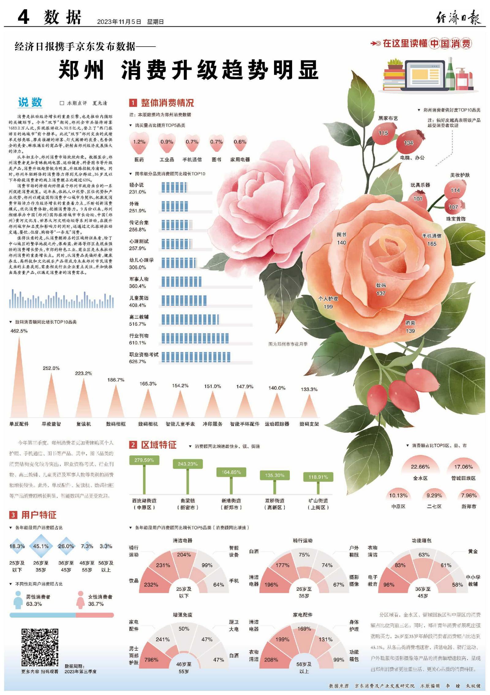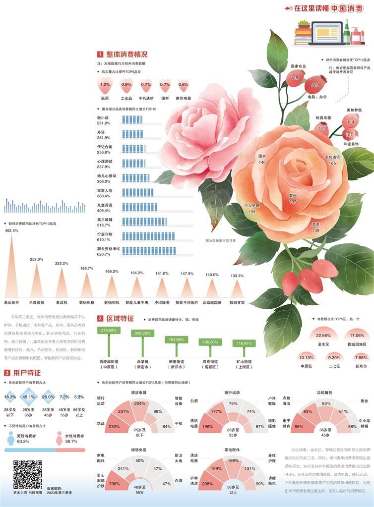 从年初至今,郑州消费市场欣欣向荣。数据显示,郑州消费者更加青睐数码电器、运动健身、科普图书等升级类产品,消费升级趋势较为明显,升级路径较为清晰。同时,郑州年轻群体的消费潜力得到充分释放,36岁及以下年龄段消费者的线上消费额占比超过63%。