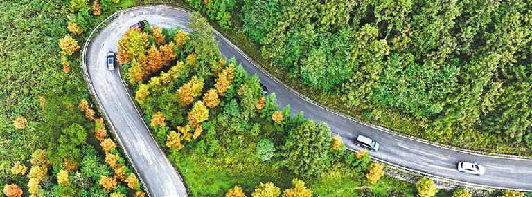 11月5日,在重庆市彭水苗族土家族自治县润溪乡樱桃井村,一条条公路蜿蜒穿梭在森林中。