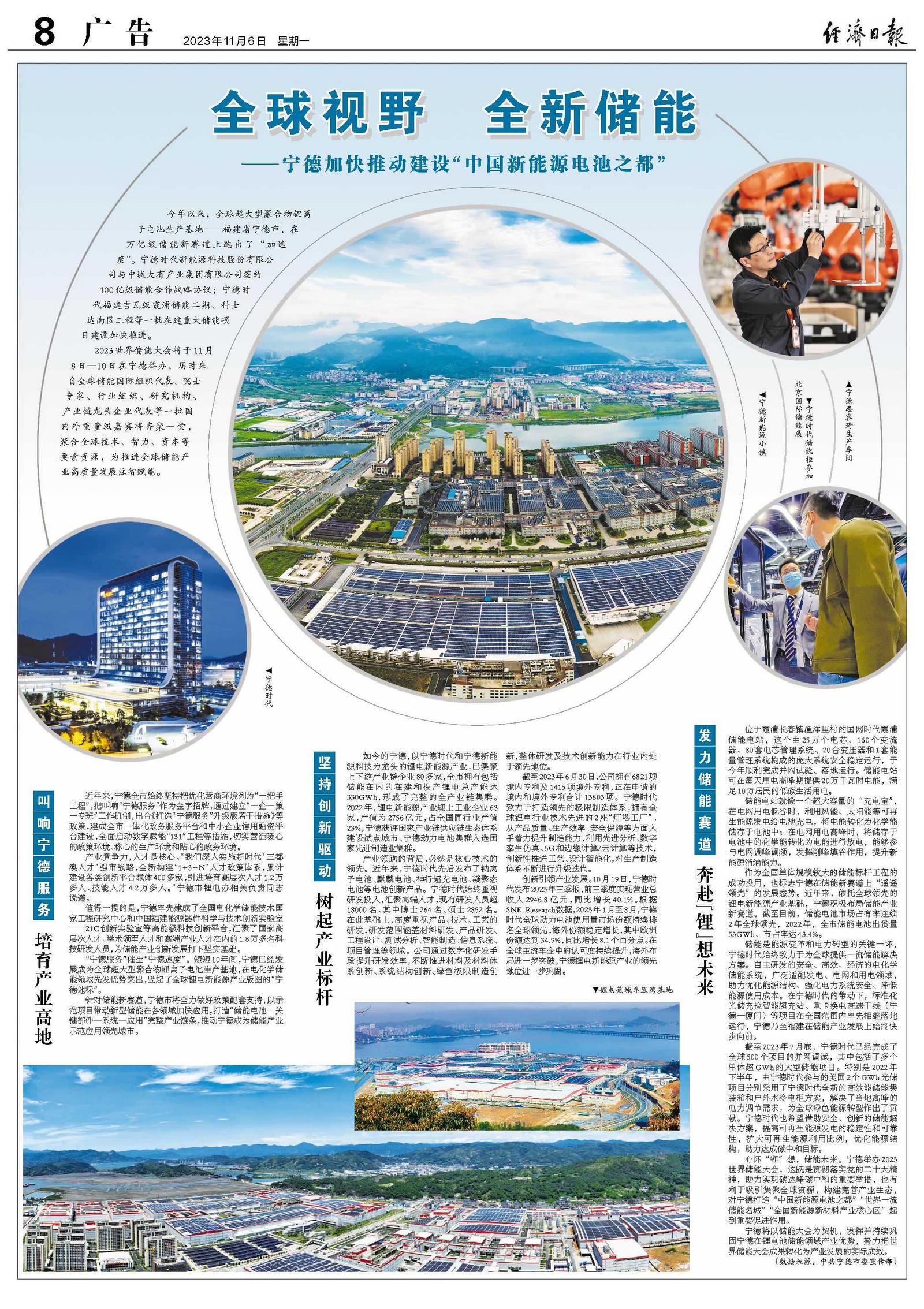 “宁德服务”催生“宁德速度”。短短10年间,宁德已经发展成为全球超大型聚合物锂离子电池生产基地,在电化学储能领域先发优势突出,竖起了全球锂电新能源产业版图的“宁德地标”。