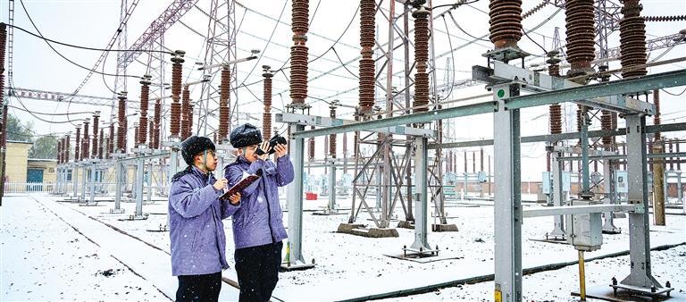 11月6日,国网四平供电公司员工在巨丰220千伏变电站对设备进行红外测温。近日,东北部分地区出现强降雪天气。国网吉林省电力有限公司科学精准有效调度,统筹组织各单位开展抗冰保电工作,组织418支抢修队伍、3463人次抢修人员、989台次抢修车辆,全力以赴保障电力可靠供应。