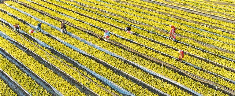 11月6日,江苏省宿迁市沭阳县刘集镇南长庄村花木基地,村民们正在田间除草、管护花木苗。近年来,沭阳县刘集镇围绕生产、生活、生态融合发展,以花木产业为抓手,引领创业带动就业,助力乡村振兴。周 永摄(中经视觉)