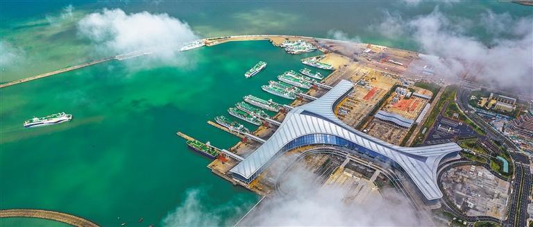 11月6日,海南海口新海滚装码头客运综合枢纽站项目建设进入收尾阶段。该项目建成后,将成为集港口候船、登离船、口岸查验、枢纽商业和交通“零换乘”等功能于一体的全国最大港口客滚综合枢纽,可实现游客过海“零换乘”,提升海口新海港的服务水平,辐射带动周边旅游、文化和商业配套服务发展。苏弼坤摄(中经视觉)