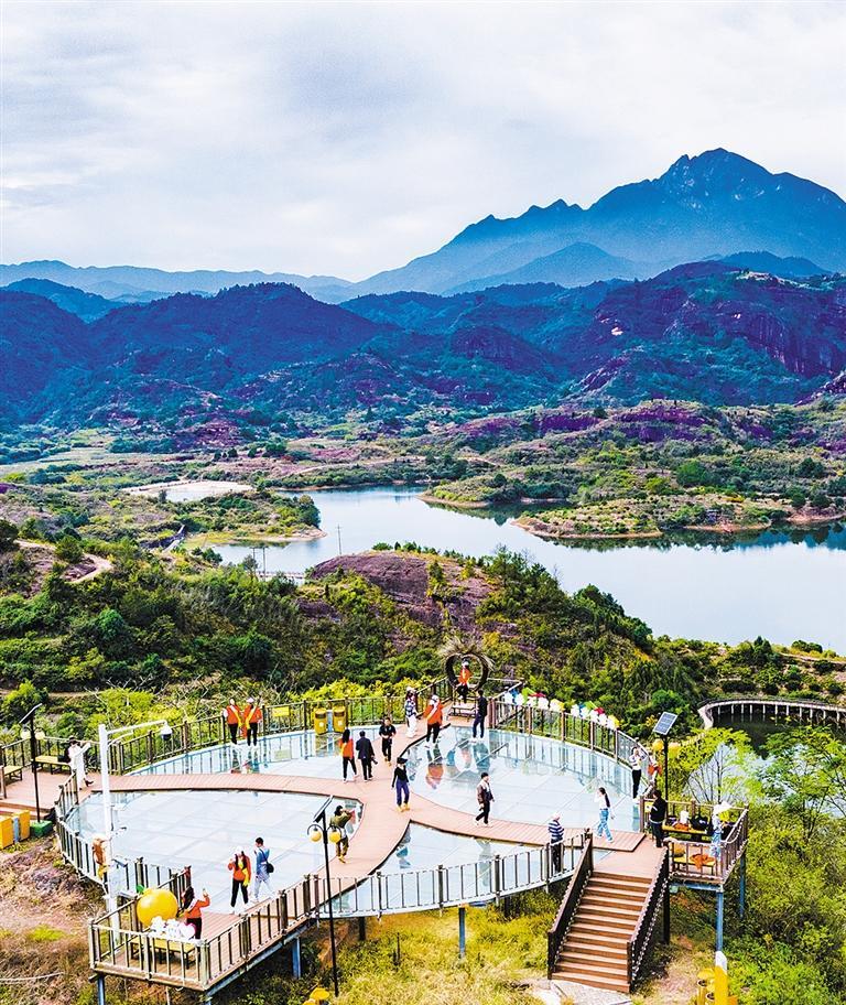 十一月七日,江西省抚州市南丰县市山镇包坊村,车磨湖与丹霞地貌、万亩橘园交相辉映。近年来,当地以橘文化为主题精心打造国礼园等景区,以乡村旅游助力乡村振兴。谢 东摄(中经视觉)