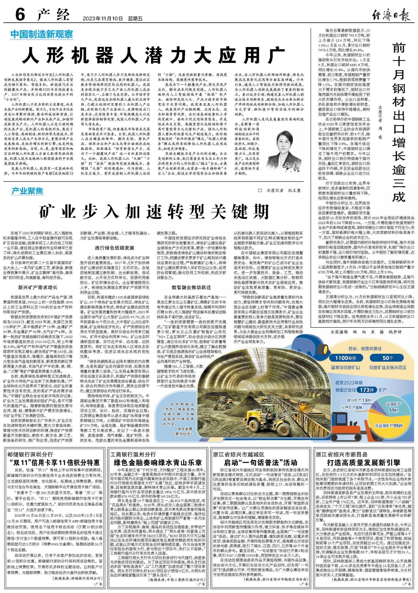 发展人形机器人,我国有一定基础和优势。今年年初热映的国产电影《流浪地球2》中,有不少人形机器人并不是特效或特殊定制,而是已在商贸物流、医疗健康、商业社区服务等领域得到实际应用的机器人。我国是全球为数不多已生产出人形机器人成品的国家之一,占据了先发优势。大市场孕育大产业,我国还是全球机器人最大的应用市场,已建立起相对完整的工业机器人产业链,在前期已有产业基础上,发挥制造业门类齐全、应用场景丰富、市场规模庞大以及新型举国体制等优势,我国人形机器人产业将大有未来。