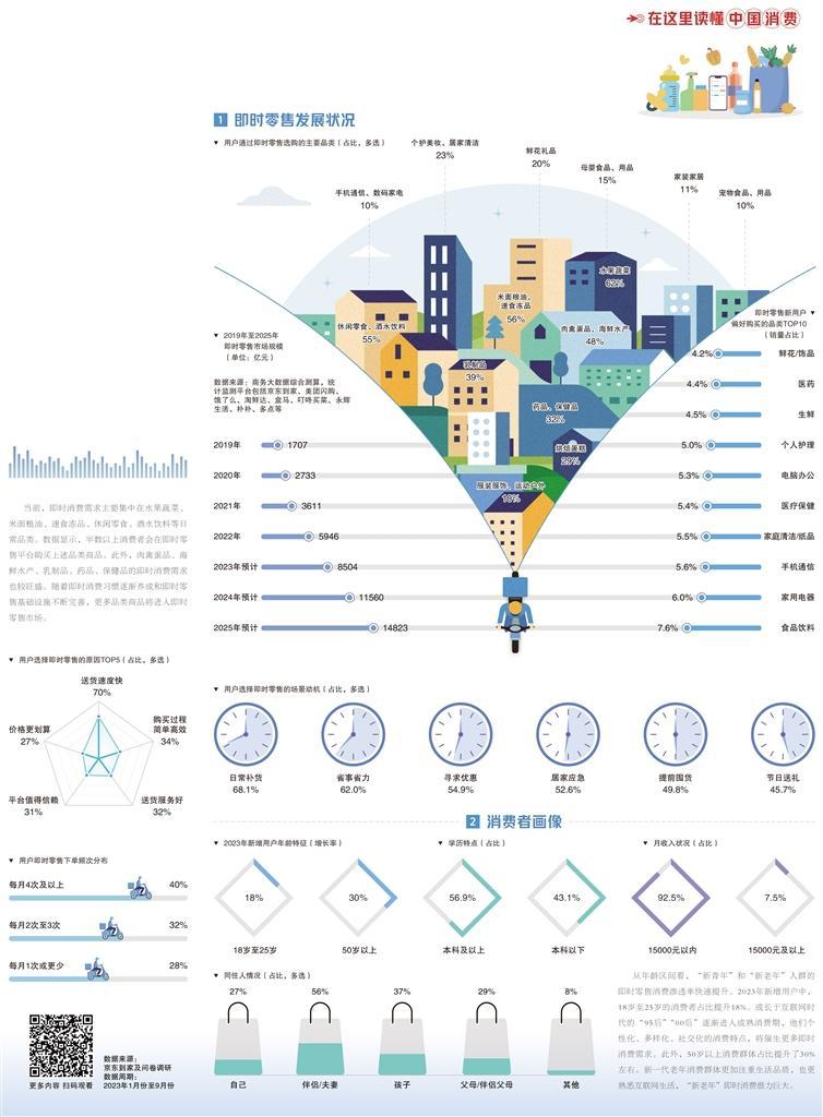 随着全品类、全时段、全场景即时零售消费需求持续增长,未来依托数字化+供应链的核心能力,即时零售将有效助力商品和服务在供给端、流通端和消费端的“即时化”升级,成为拉动消费增长的新引擎。