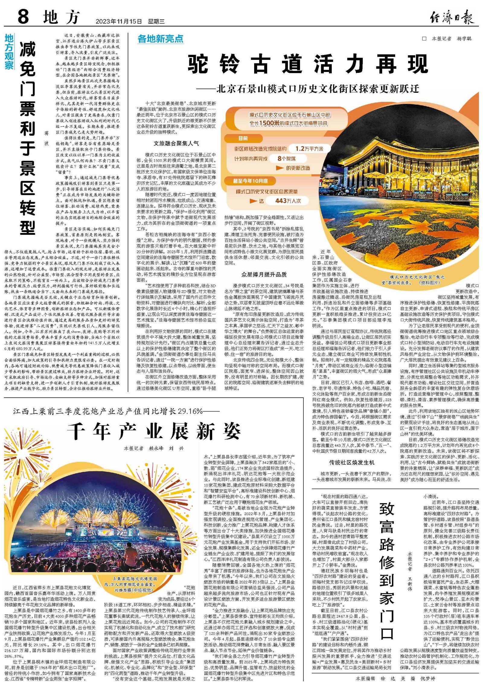 随着消费回暖,全国各地火热上演的“烟花秀”丰富了游客的旅游体验,也为各地花炮生产企业带来了机遇。“今年以来,我们公司在文旅焰火燃放市场的销量是2022年的3倍以上。”上栗县金圆花炮制造有限公司营销总监吴强说,公司产品越来越多流向旅游市场,公司也正针对现有产品设计景区燃放方案,开发更多适合旅游景区燃放的花炮产品。