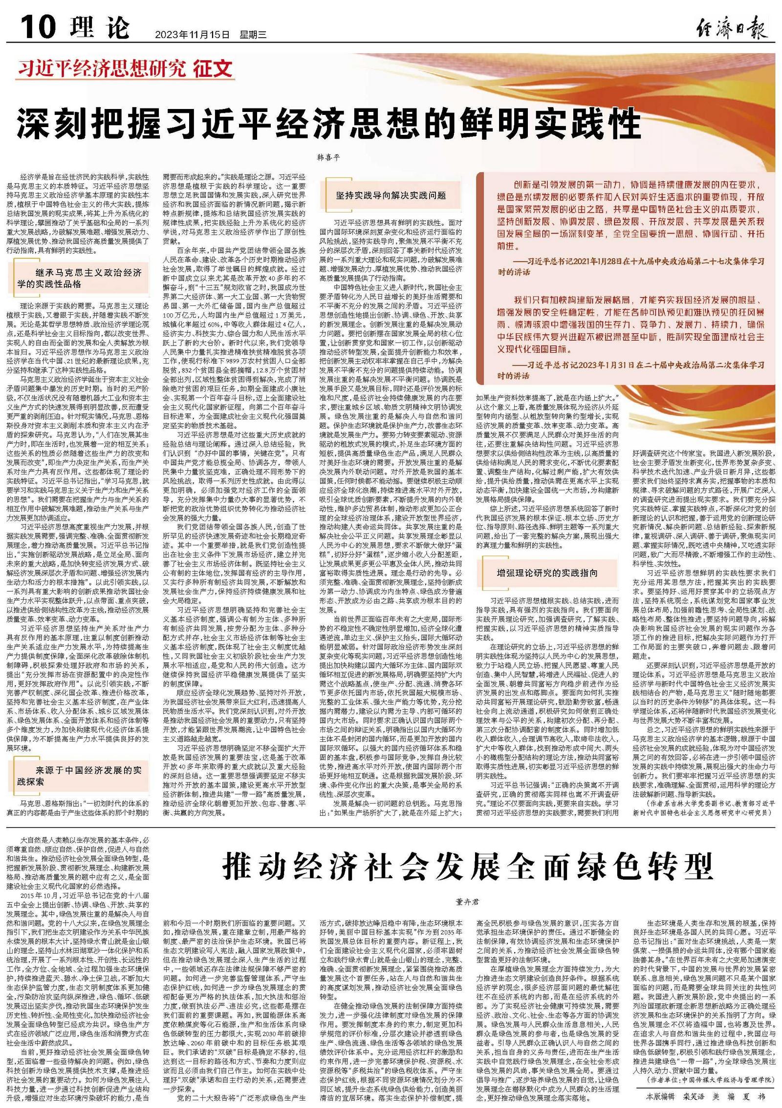 大自然是人类赖以生存发展的基本条件,必须尊重自然、顺应自然、保护自然,促进人与自然和谐共生。推动经济社会发展全面绿色转型,是把握新发展阶段、贯彻新发展理念、构建新发展格局、推动高质量发展的题中应有之义,是全面建设社会主义现代化国家的必然选择。