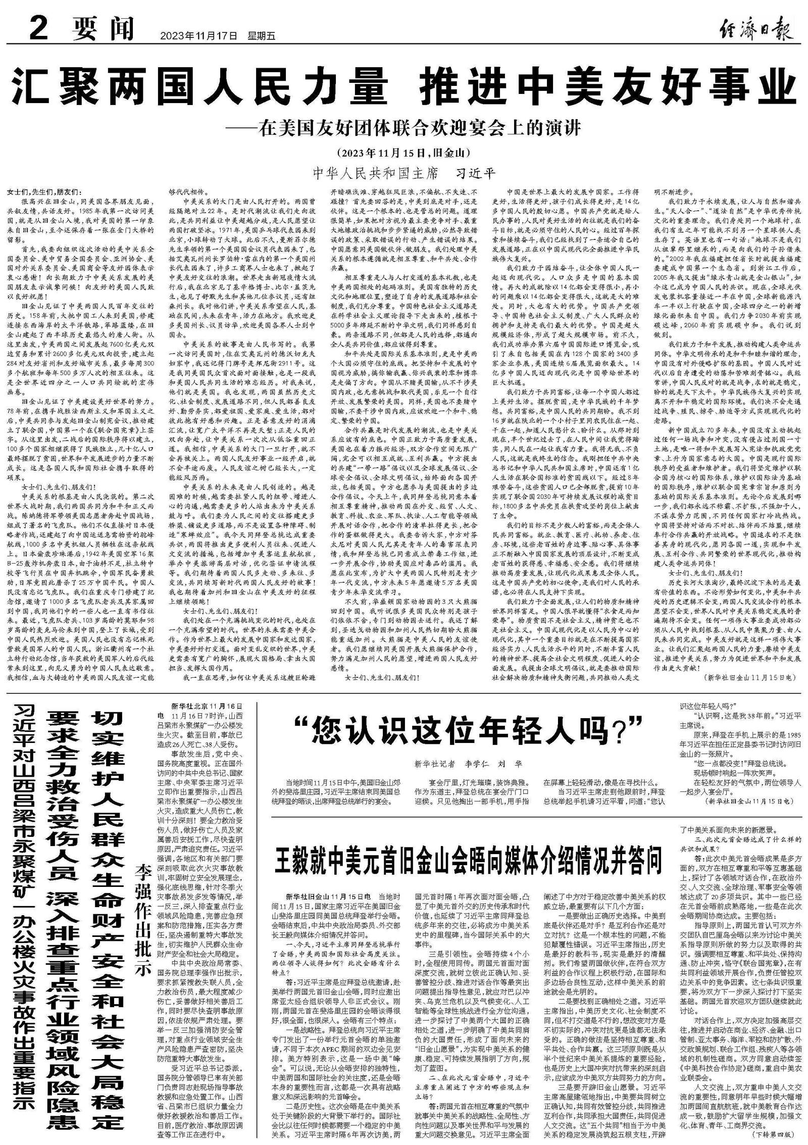 三是要开辟旧金山愿景。习近平主席高屋建瓴地指出,中美要共同树立正确认知,共同有效管控分歧,共同推进互利合作,共同承担大国责任,共同促进人文交流。这“五个共同”相当于为中美关系的稳定发展浇筑起五根支柱,开辟了中美关系面向未来的新愿景。