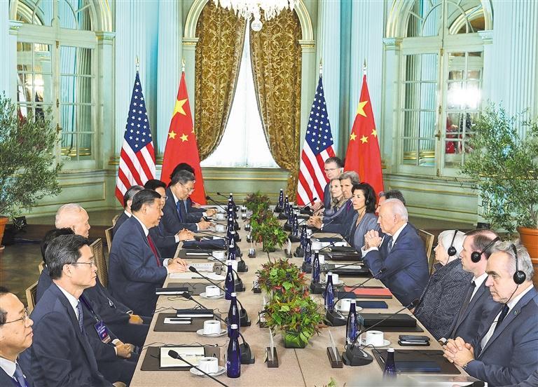 这次会晤积极、全面、富有建设性,为改善和发展中美关系指明了方向。旧金山应该成为稳定中美关系的新起点。两国元首责成双方团队在落实好巴厘岛会晤共识基础上,及时跟进和落实本次会晤达成的新愿景。两国元首同意继续保持经常性联系。