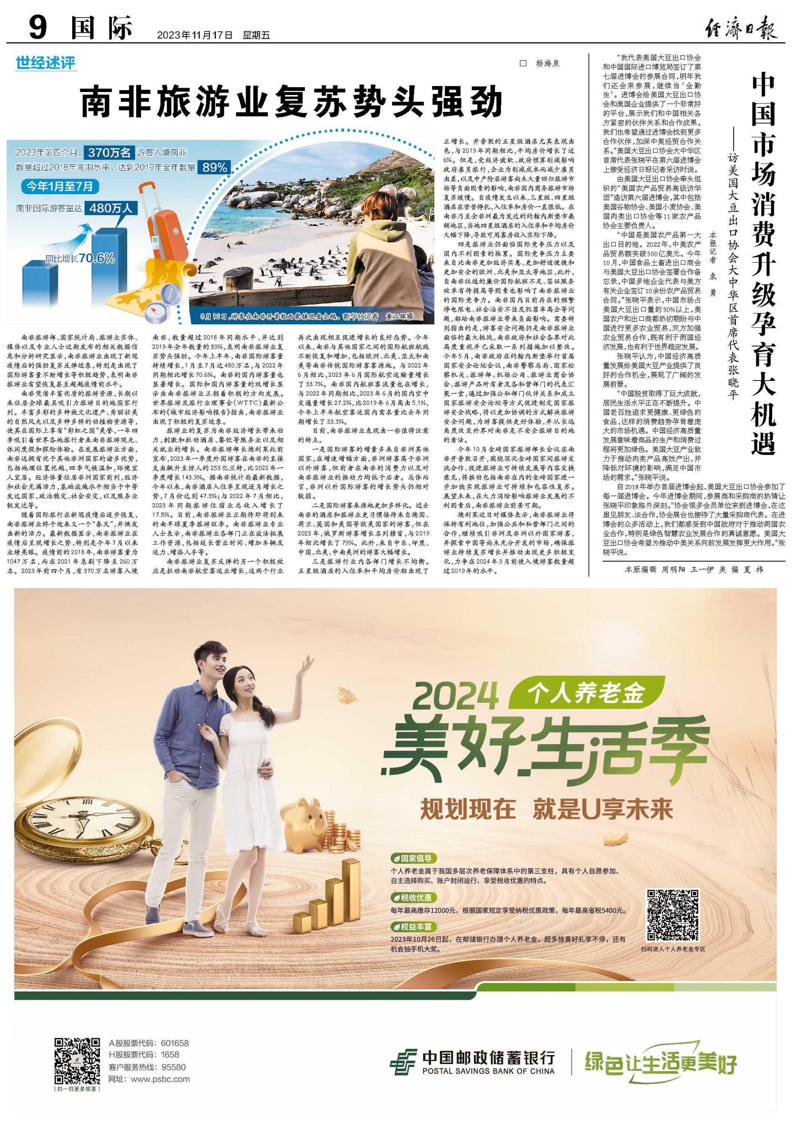 今年10月金砖国家旅游部长会议在南非开普敦召开,围绕深化金砖国家间旅游交流合作、促进旅游业可持续发展等内容交换意见,将推动包括南非在内的金砖国家进一步加快实现旅游业可持续和包容性复苏。展望未来,在大力消除影响旅游业发展的不利因素后,南非旅游业前景可期。