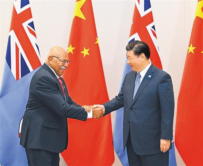 习近平指出,中国发展同太平洋岛国关系坦坦荡荡,没有私心,不针对第三方。中国的太平洋岛国政策充分尊重岛国主权和独立,不附加政治条件,不开空头支票。中国和太平洋岛国都是发展中国家,应该在南南合作框架内加强互帮互助。