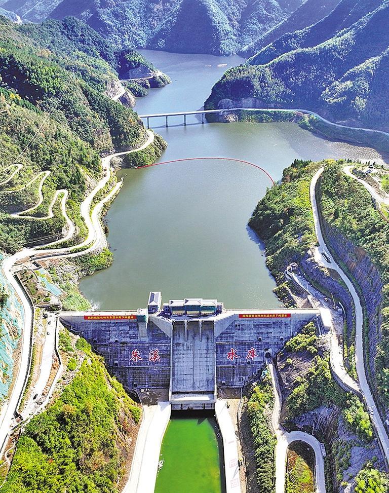 十一月十七日拍摄的浙江台州朱溪水库。水库计划于明年四月底前通水,通水后将形成长潭—朱溪双库联供格局,可有效缓解当地饮用水不足的问题。孙金标摄(中经视觉)