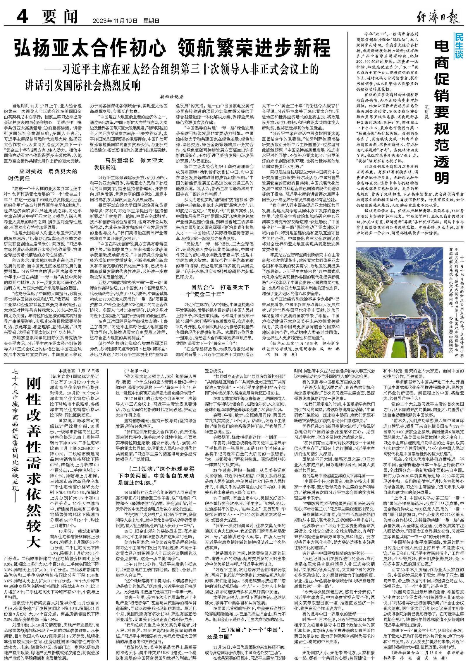 刘爱华说,从10月份情况看,房地产开发投资、商品房销售额等指标出现了一定的边际改善迹象。从长期看,目前我国人均GDP刚刚超过1.2万美元,城镇化率还有较大提升空间,住房刚性需求和改善性需求依然较大。未来,随着各地区、各部门进一步深化落实房地产有关政策,房地产发展新模式逐步建立,将促进房地产市场的平稳健康和高质量发展。