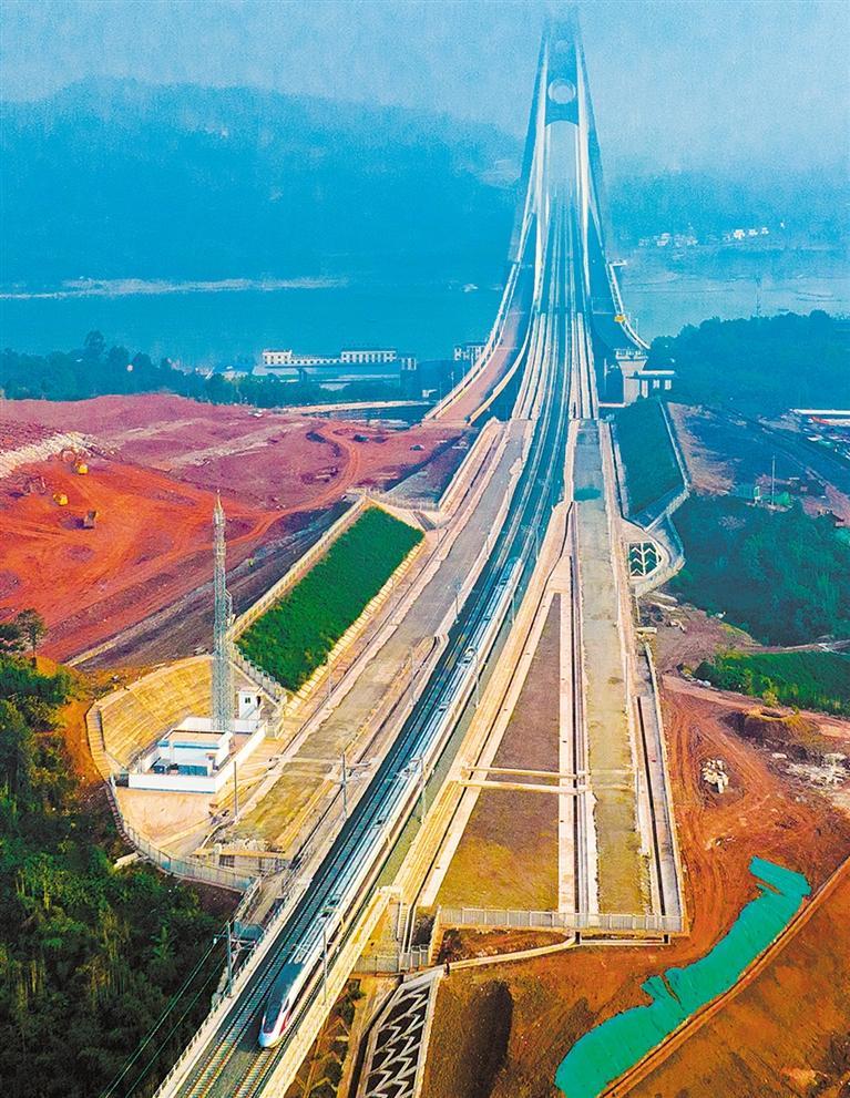 11月19日,一列复兴号动车组试验列车从四川宜宾临港长江公铁两用大桥上驶过。当日,成都至宜宾高速铁路进入运行试验阶段。该铁路为国家“八纵八横”高速铁路网“京昆通道”的重要组成部分,建成通车后将有效带动沿线经济社会发展。庄歌尔摄(中经视觉)