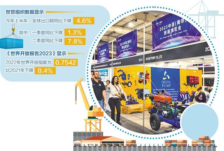 全球贸易动能减弱的背后,是世界开放趋势“遇冷”。最新发布的《世界开放报告2023》显示,2022年世界开放指数为0.7542,延续了近15年来总体下降的走势,这一数据比2021年下降0.4%,为2008年以来第二低的水平。“寒意”之下,经济全球化阴霾重重。