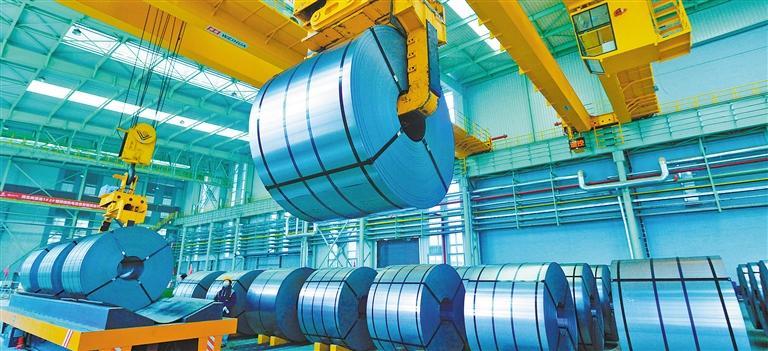 11月20日,在河北省承德市双滦区美富淦钒钛高端数字化系列冷轧生产制造项目车间,智慧天车正在吊运冷硬板。